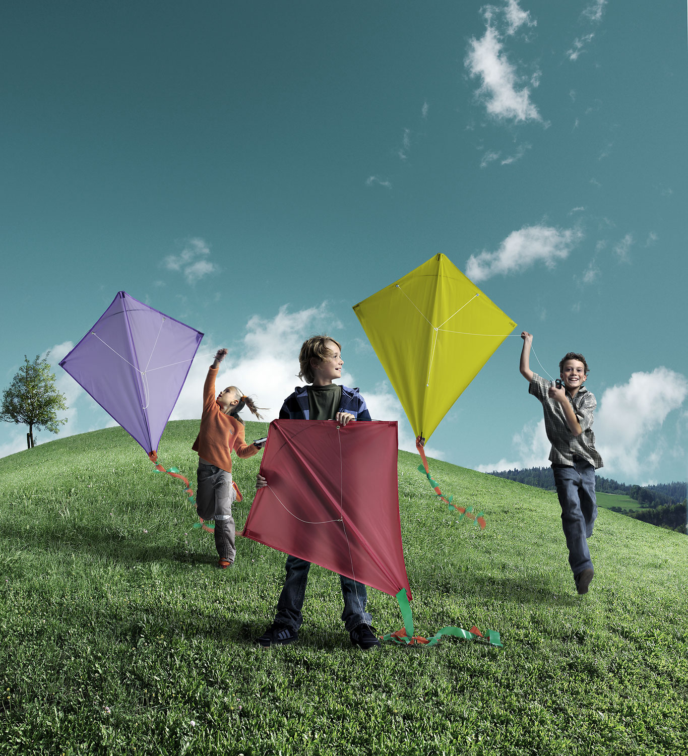 Sie wurden im Studio einzeln mit dem Drachen fotografiert und das Licht dem Landschafts-hintergrund angepasst. Einzelne Drachen habe ich separat auf-genommen.